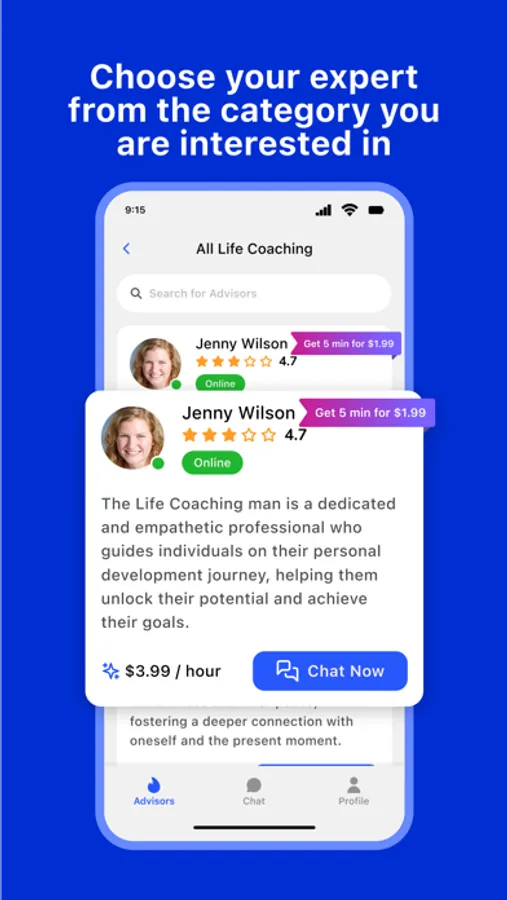 On this app, you have access to a wide selection of skilled advisors offering various wellness services. Each advisor undergoes a meticulous vetting process to ensure their expertise in their respective fields, guaranteeing you the finest care possible.