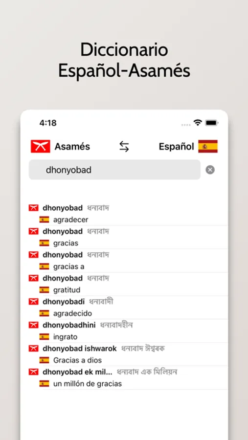 - Posibilidad de buscar a partir de palabras en Español o Asamés