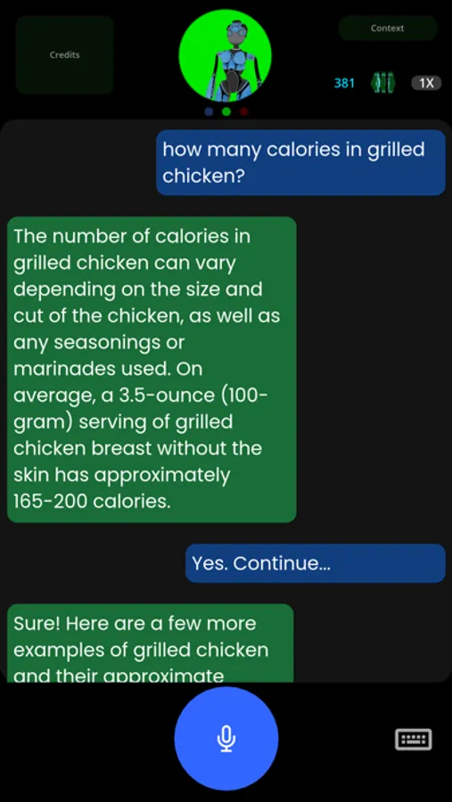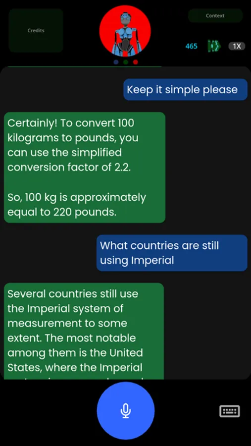 * Configure up to three profiles and conversations (contexts) and easily interact via voice or text with the chatbot