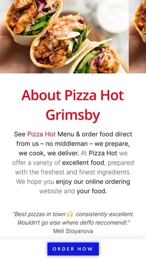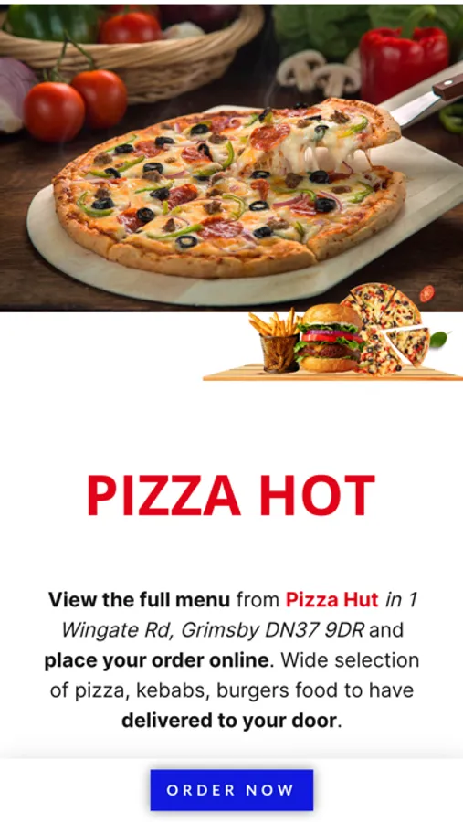 Order food online in Grimsby! Download our official mobile app and Order DIRECTLY from Pizza Hot located in 1 Wingate Rd, Grimsby DN37 9DR.