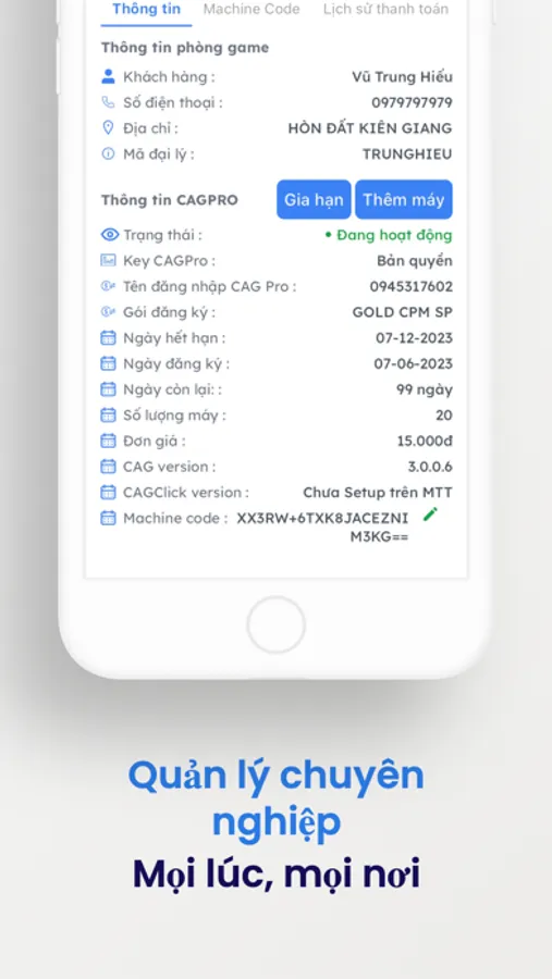CAG Pro là ứng dụng thiết thực dành cho chủ các phòng game, nhằm tối ưu hóa quản lý thông tin và lịch sử thanh toán. Với giao diện thân thiện, ứng dụng giúp bạn dễ dàng ghi chép chi tiết về phòng game, trạng thái hoạt động, cài đặt và chỉnh sửa cấu hình phòng máy từ xa.