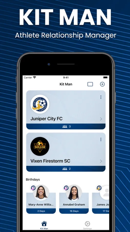 Kit Man application allows you to prepare your Clubs / Teams / Athletes