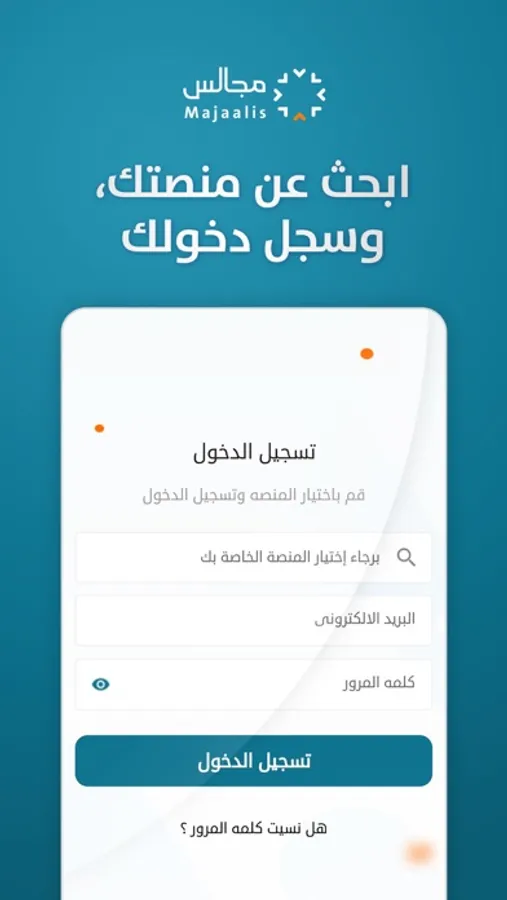 ابحث عن اسم المنصة المشترك بها باللغة العربية أو بإدخال أول 3 أحرف من عنوان الويب الخاص بها.