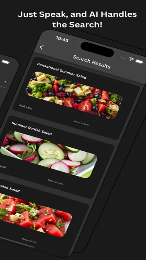 Whether you're seeking a dish for a special occasion or just feeling a specific craving, simply describe it out loud – "I'm in the mood for a healthy summer salad" – and dive into our vast collection of top-tier recipes. With MetaFitX's intuitive voice search and advanced AI, you're not just searching; you're being understood. Discover the perfect dish tailored to your words every time. It's culinary magic at your command!