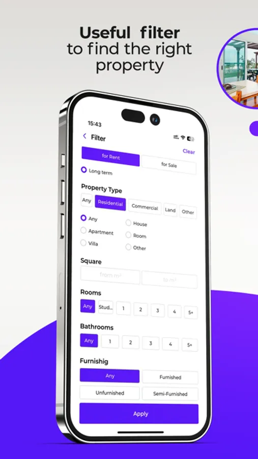 Buy or rent a villa, apartment, or flat for living and leisure.