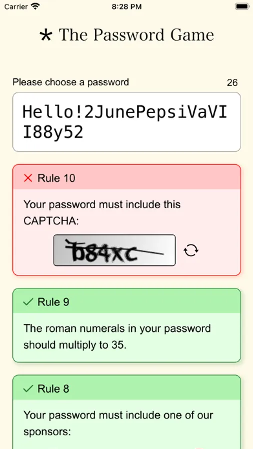 The original Password Game developed by Neal Agarwal. Requires an internet connection.