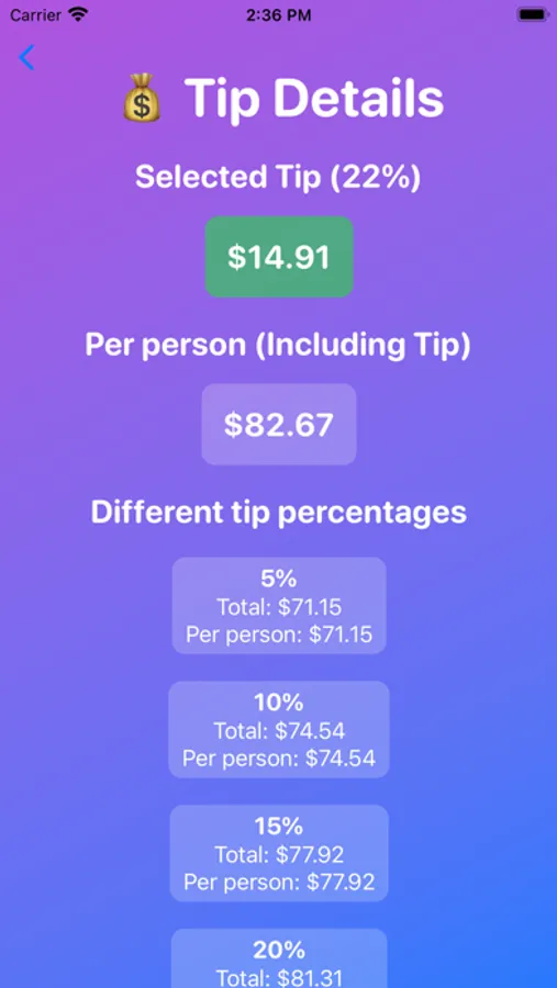 Built with a user-friendly interface, TotalTipster lets you enter the total bill amount, choose the tip percentage you wish to give, and input the number of people if you're sharing the bill. Trust TotalTipster to calculate the exact tip per person and total amount to be paid, with the highest levels of precision.