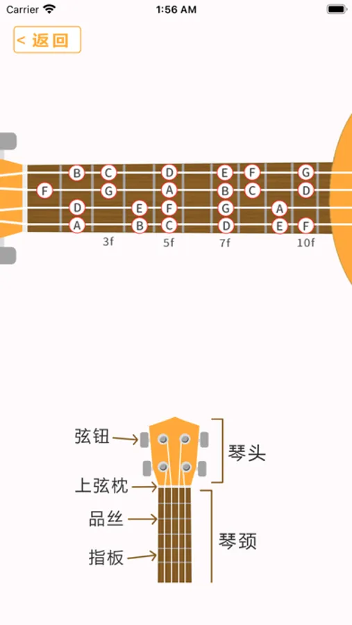 它与尤克里里琴的基本调弦(G、C、E、A)相匹配