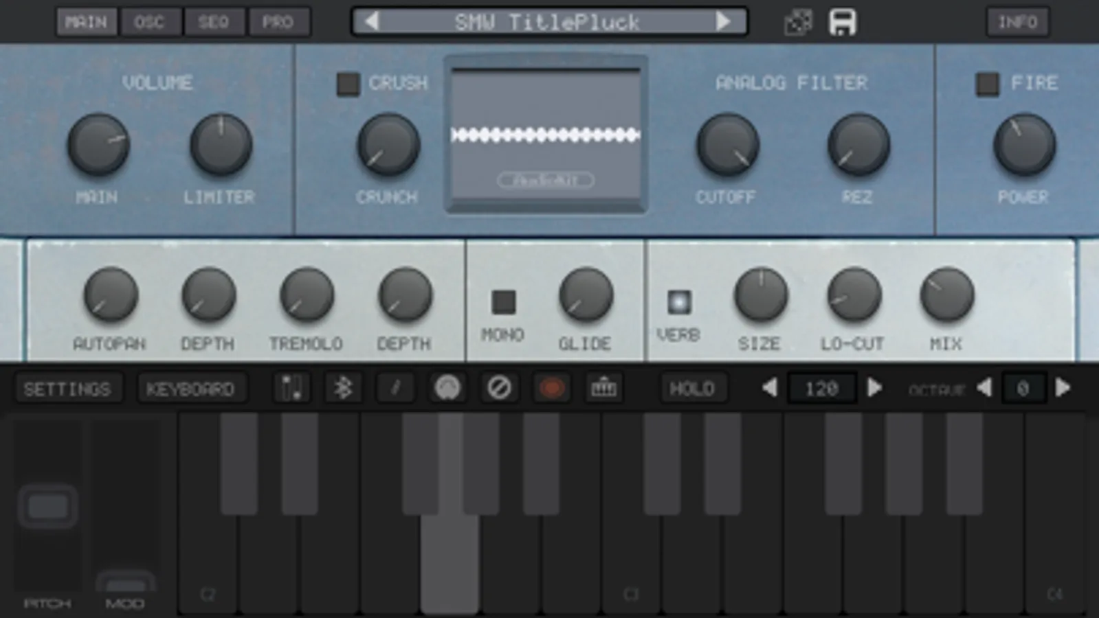 • Use with MIDI keyboard or iOS MIDI host