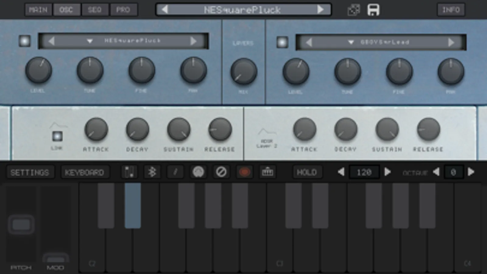 • Full ADSR (Attack, Decay, Sustain, Release for each layer)