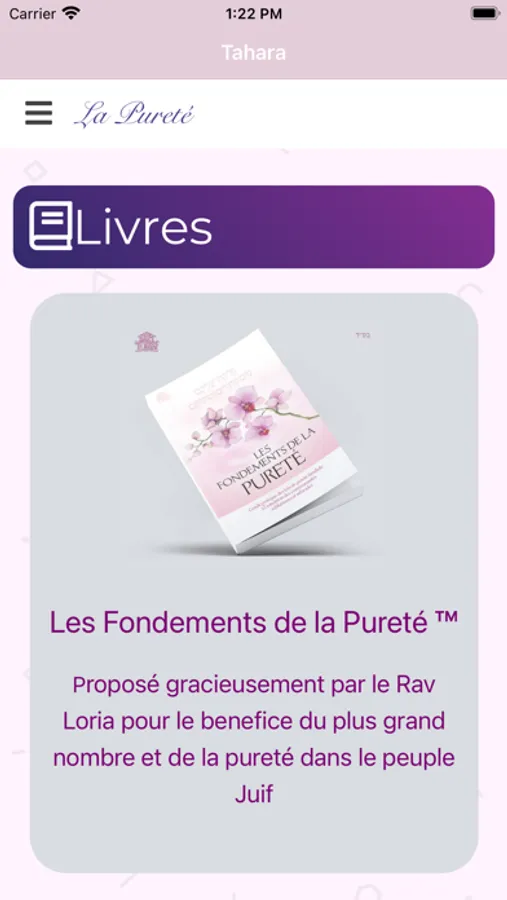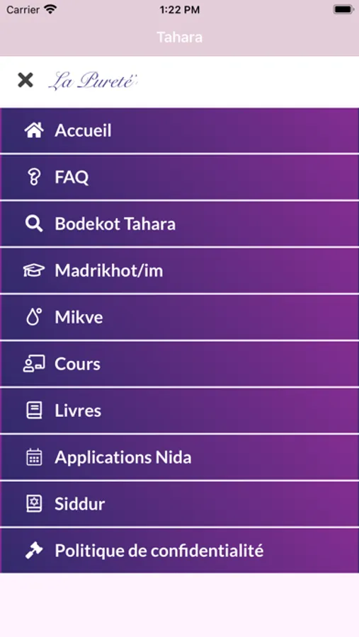 Bienvenue a toutes! Cette app vous permettra d'y voir plus clair dans les lois de pureté et de trouver les contacts et les lieux utiles.