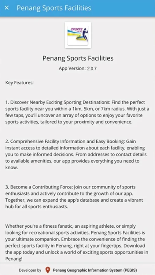 Whether you're a fitness fanatic, an aspiring athlete, or simply looking for recreational sports activities, Penang Sports Facilities is your ultimate companion. Embrace the convenience of finding the perfect sports facility in Penang, right at your fingertips. Download the app today and unlock a world of exciting sports opportunities in Penang!