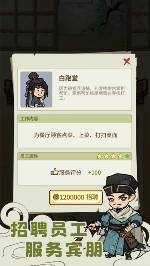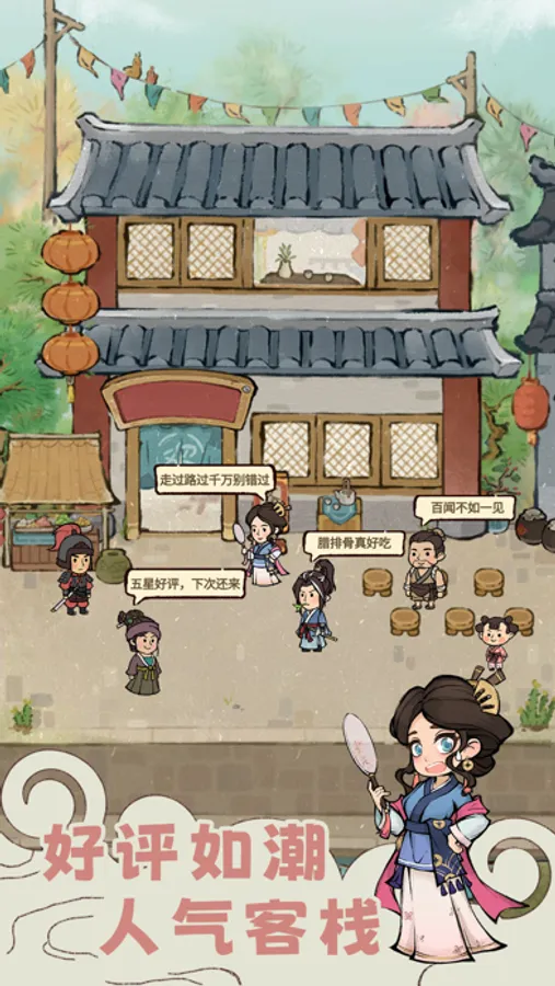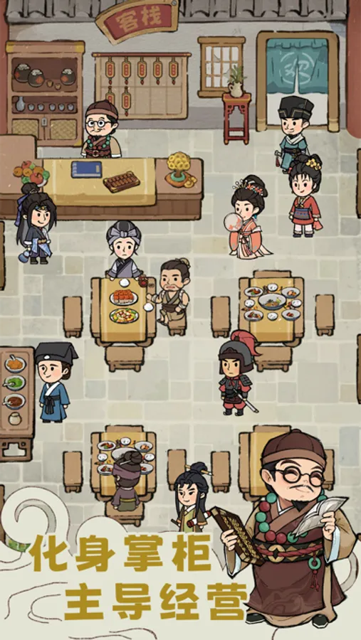 玩家扮演的是一个身在江湖却一心只想经营壮大自己客栈的新手掌柜,只要怀抱初心、用心经营,相信在老掌柜的提点和客栈伙计的共同努力下,你一定能够将破落不堪的小客栈打造成江湖闻名的天下第一客栈!