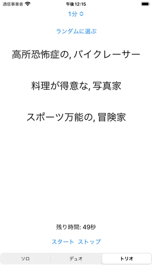 あなたの即興劇は1分・2分・3分の間に設定できる便利なタイマー機能で時間を管理します。パフォーマンス時間の制限により、あなたのクリエイティビティを最大限に引き出す訓練を行うことができます。
