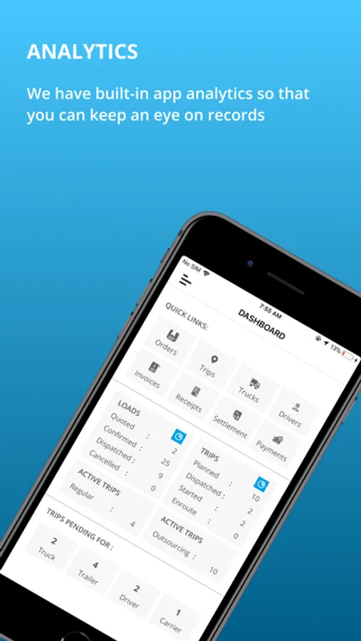 AFM Bharat will help you boost your business performance, streamline your operations, and save substantial costs. You will gain a better financial visibility and an optimal dispatch and fleet management process. Manage your business from anywhere anytime with our Mobile Apps and multi device Web Application. A Complete Solution For Freight Management.
