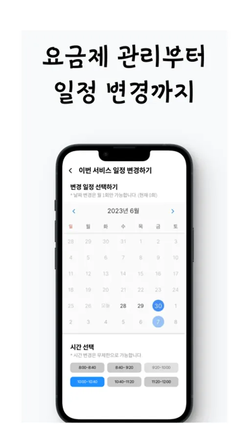 전화로 설명하지 않아도, 앱을 통해 간편하게 날짜, 결제, 요청사항을 입력하여 예약할 수 있습니다.