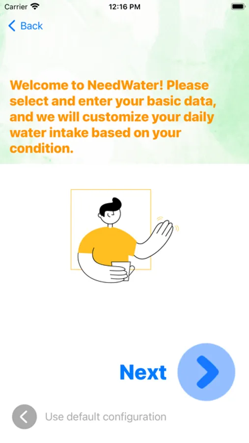 NeedWater will customize your daily water intake based on your condition.