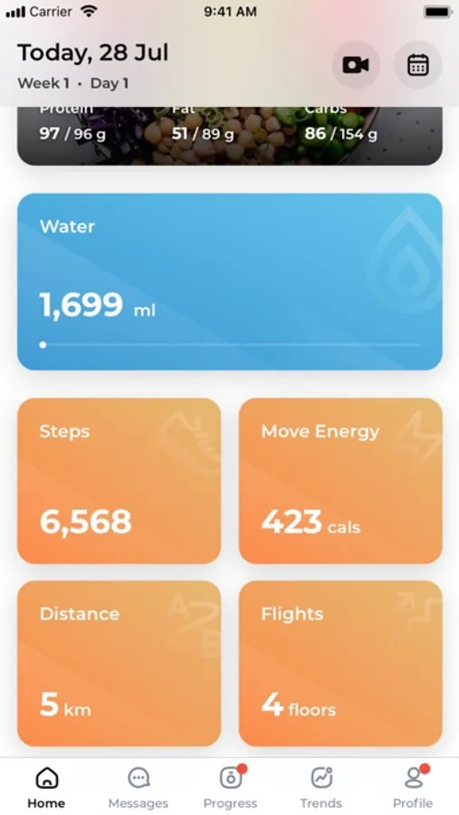 The app integrates with Apple Health to show your daily activity - distance, steps, active energy, and flights to help you better achieve your goals.