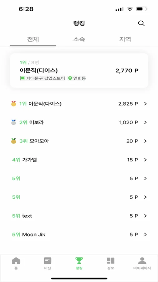 이번달 미션왕은 누구~~~?? 어디~~~?? 랭킹에 도전하세요!