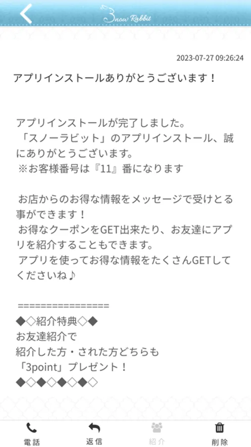 スノーラビットのアプリをSNSを通じてお友達に紹介する事ができます。