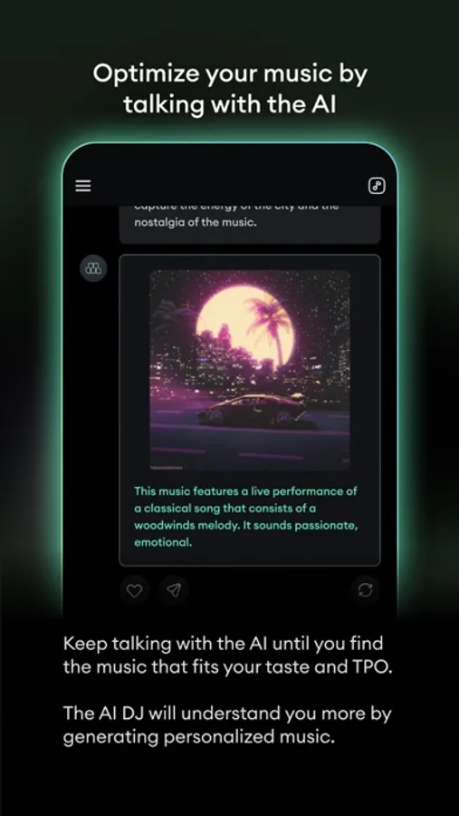 Keep talking with the AI until you find the music that fits your taste and TPO.