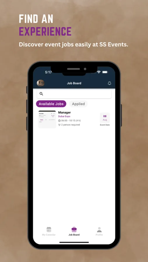 From swift registration to exploring exciting job prospects, SS Events simplifies your journey. Create an account, provide your details, and dive into a world of possibilities.