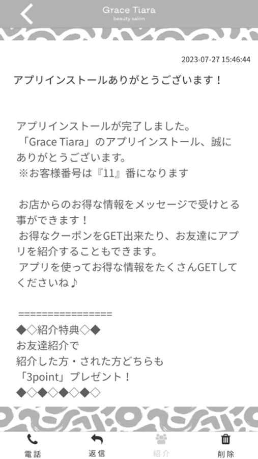 このアプリでは、Grace Tiaraの最新情報の受け取りや便利な機能を使う事ができます。
