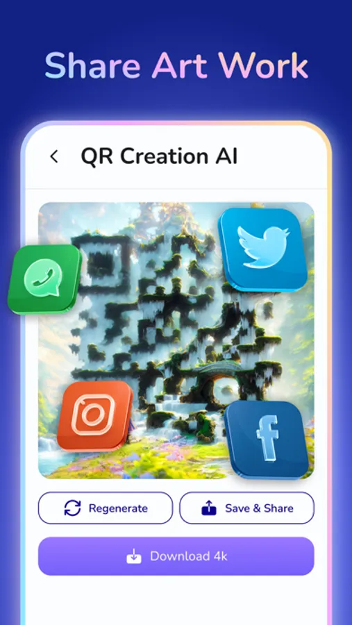 Allowing you to create AI QR code with just a few seconds, the miracle of the QR Create+ is in your hands! It is simple and easy to use! Experience this fantastic app now to own unique works of QR art code and become the center of attention. Create your QR art code with AI. You will love it.