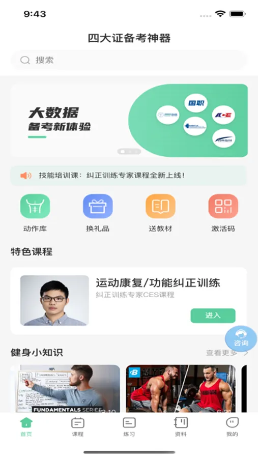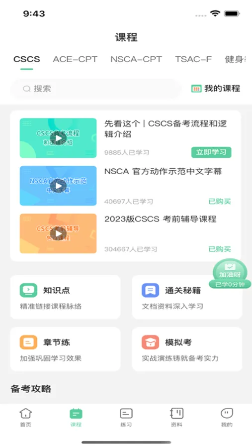 我们的备考课程工具库包括正版四大认证备考材料,涵盖美国体能协会、美国运动委员会、美国国家运动医学院、美国运动医学会等机构。