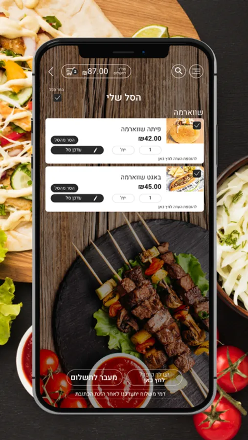 ניתן לבצע הזמנות ומשלוחים ישירות מהאפליקציה שווארמה לב העיר.