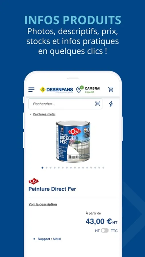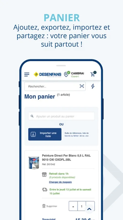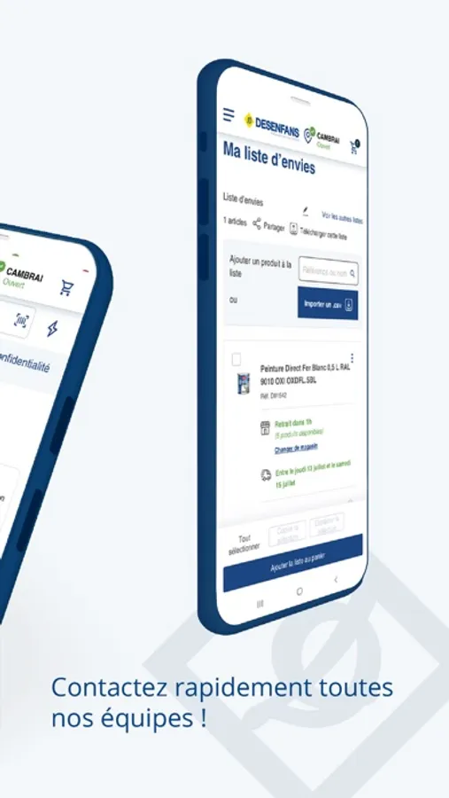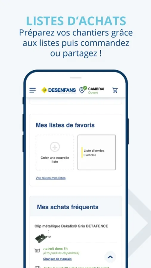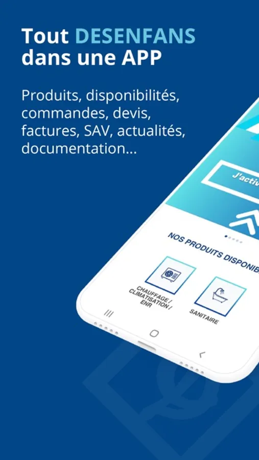Avec l'application Desenfans, effectuez tous vos achats en chauffage, plomberie, sanitaire, électricité, outillage, couverture, quincaillerie et bâtiment pour tous vos chantiers.