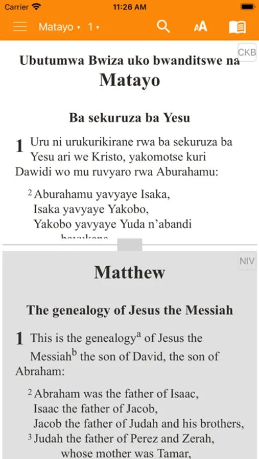 Biblica New International Version in English that can be read side-by-side or verse-by-verse with the Kirundi Translation.