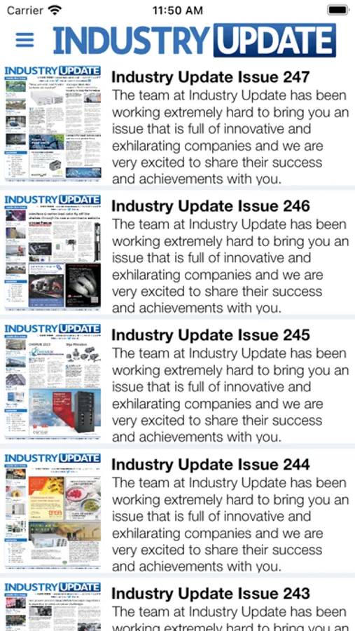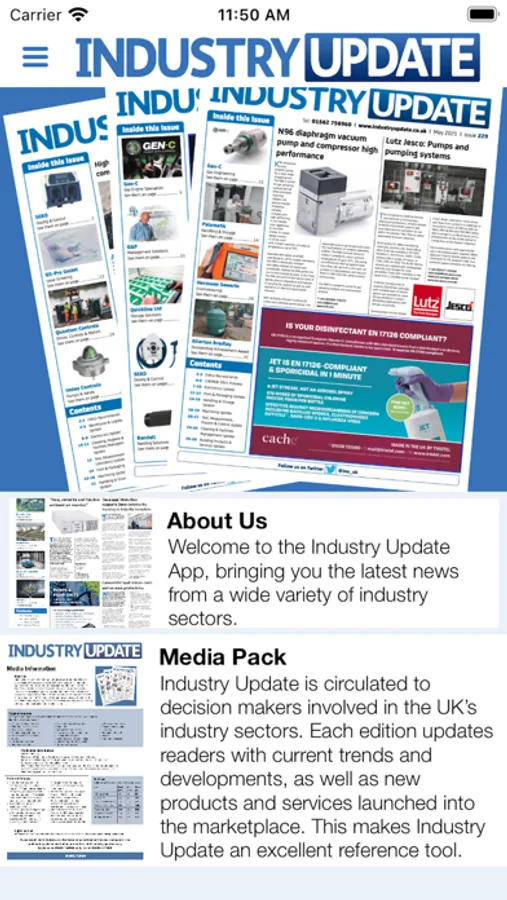 Industry Update is a multi-media digital magazine which circulates directly to 20,000 targeted businesses per issue, and is downloadable from multiple digital news stands and via social media Twitter, LinkedIn and our iOS app. The aim of the publication is to promote good quality products and services from reliable and trustworthy companies that would be of interest and relevance to our readers. People that read the publication include decision makers that work within the key sectors of UK industry. These people work for organisations such as manufacturing, engineering, process, warehousing, handling, logistics, building and construction, retail and other key industry sectors.