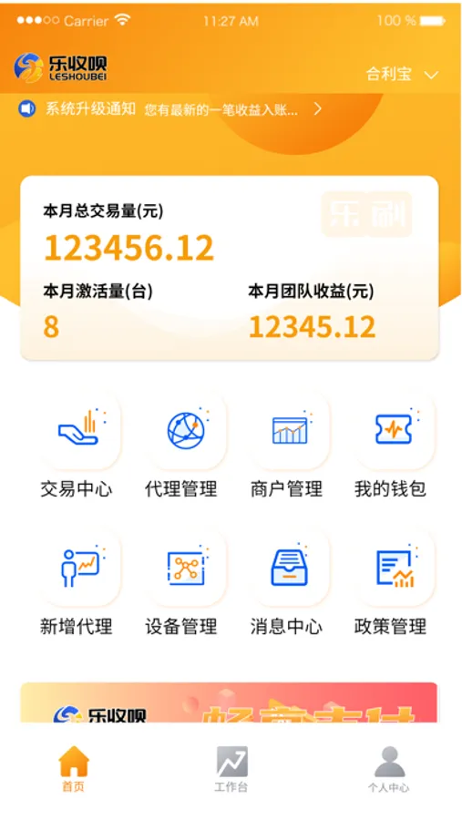 "乐收呗"是一款管理日常机具(pos)在正常使用中产生的数据清晰化平台app