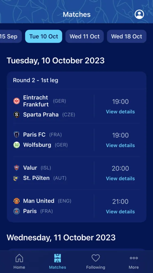 Throughout the competition, you'll be able to keep up-to-date with all the football across Europe with real-time notifications. Follow your favourite team and configure your settings to get goal alerts, line-up announcements and more.