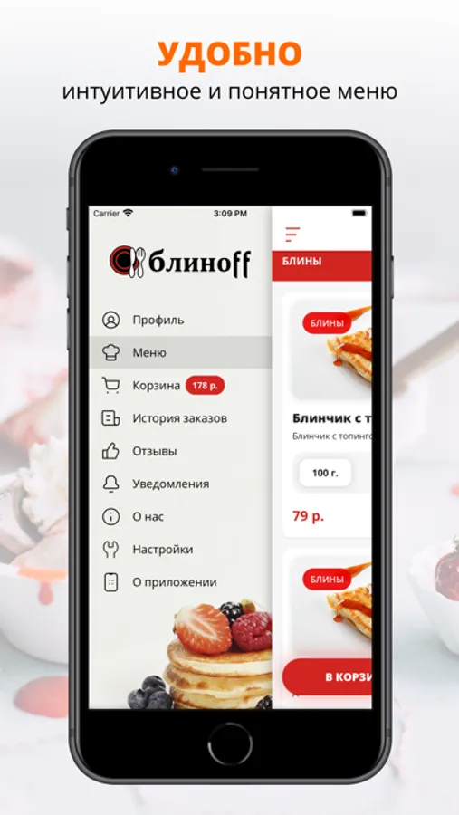 Приложение блиноff | Подольск — это удобный способ заказа еды домой или в офис! Мы готовим наши блюда из качественных свежих ингредиентов и доставляем еду быстро и бережно.
