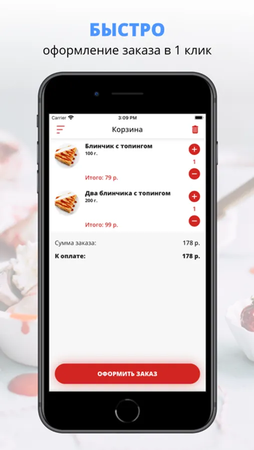 удобная корзина и быстрое оформление заказа,