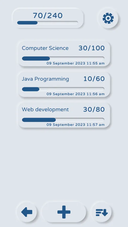 Simple Progress Tracker is an app that lets you add tasks and the desired value goal for each one. You can easily and simply increase or decrease your task progress to reach your goal! It's great for tracking courses and books.