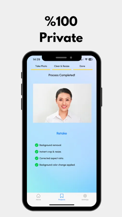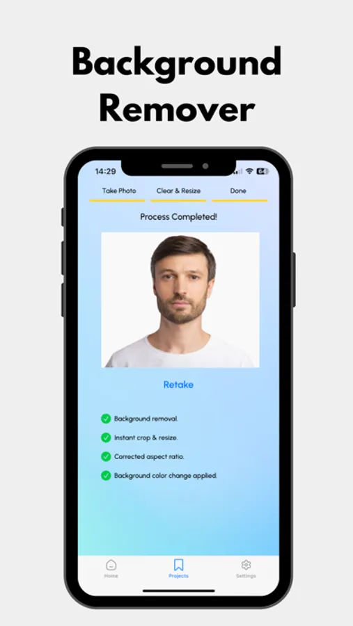 Background Removal: Easily eliminate backgrounds to meet the standard specifications for official documents. The app's advanced tools ensure a clean and professional appearance.