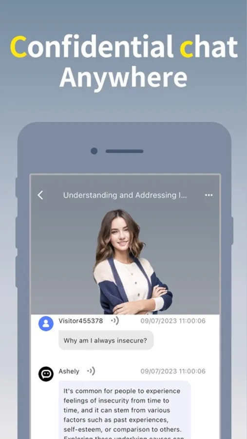 * Confidential Chat Anywhere, Anytime: Your privacy is our priority. Engage in confidential conversations in a safe space, free from judgment and prying eyes. Whether you're at home, at work, or on the go, we're here to listen.