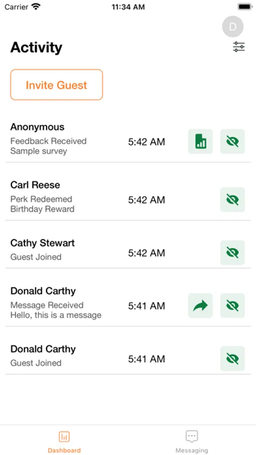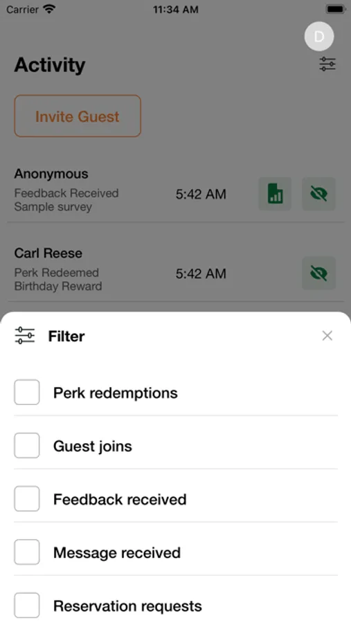 View, filter, and interact with customer activity such as customer messages, survey feedback, and more with the Perklist admin app.