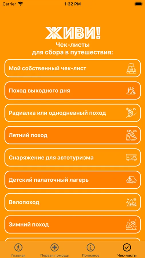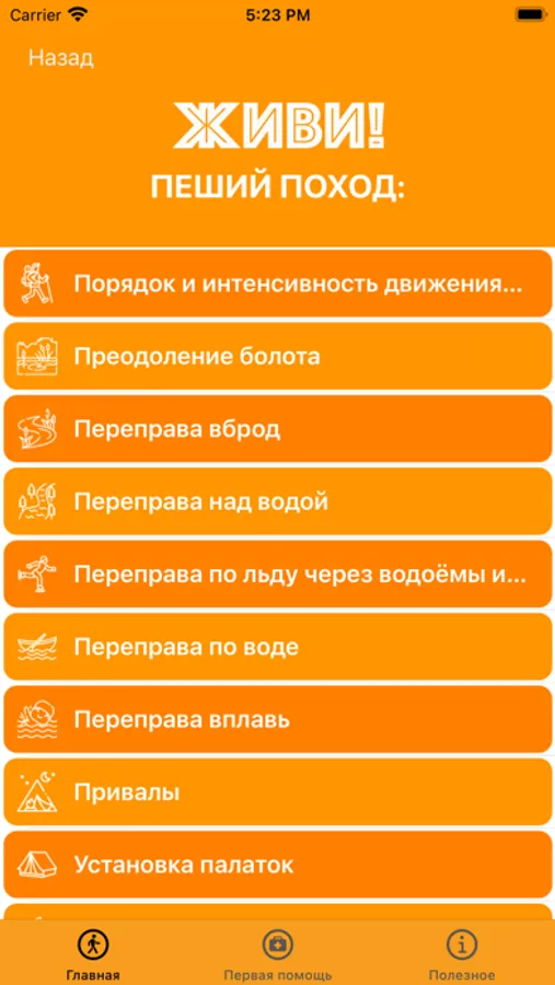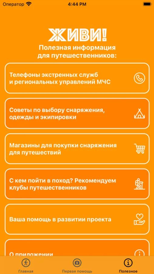 "Живи" - это не просто приложение для путешествий, оно поможет вам выжить в самых экстремальных условиях. Основы ориентирования, автономного выживания в различных климатических зонах и географических территориях, готовые чек-листы по сборам ко всем видам путешествий. И, главное, основы оказания экстренной медицинской помощи!