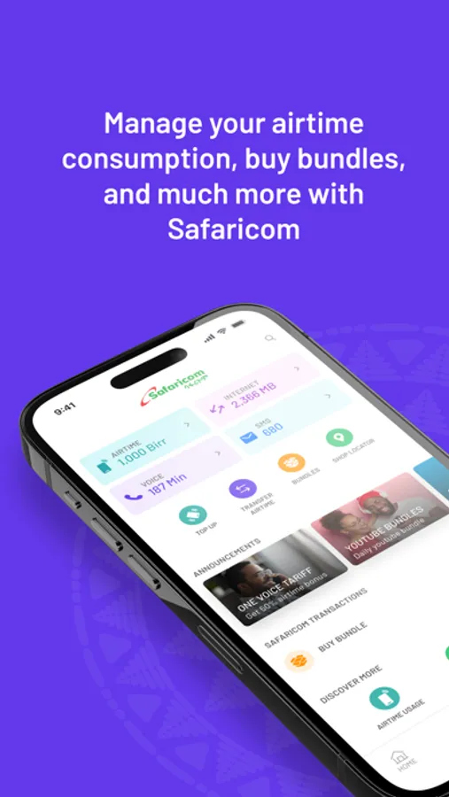 • Core Safaricom transactions - Manage your Safaricom account with ease. Check your airtime, voice and internet balances, check your consumption, top up, buy bundles, get PUK, and much more.
