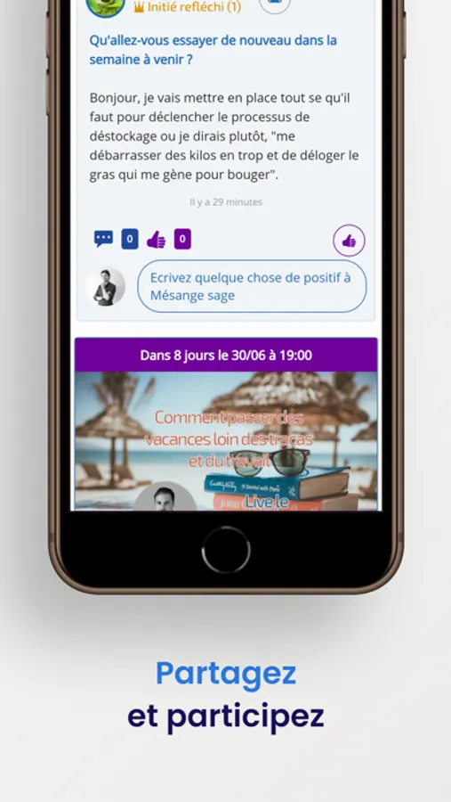 - Soutenez et soyez soutenu : Un forum vous permet de discuter et partager votre activité. Les tandems de soutien permettent de partager en privé sur diverses problématiques. Finalement, les ateliers vous offrent des formations sur divers sujet comme la gestion des émotions ou encore la loi de l’attraction.