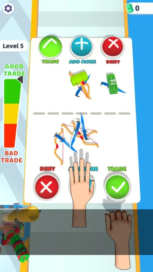 Use the powerful weapons you have obtained by trading to reach the end of the level!