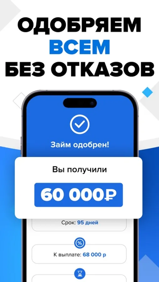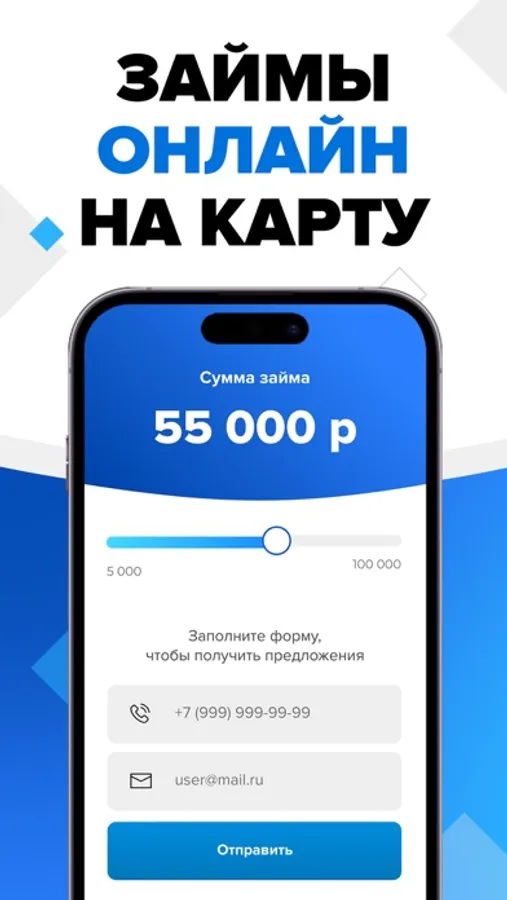 С помощью приложения "Займы онлайн на карту. До ЗП" вы в любое время, даже в выходные, можете подать заявку на займ , заполнив короткую анкету. В течение 15 минут после заполнения анкеты вы получите решение о выдаче займа.