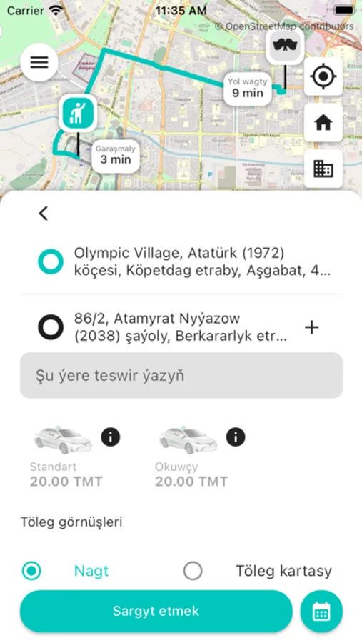 Ulanylyşy aňsat Ynamly taksi programmasy bilen birnäçe minudyň içinde gezelenç ediň. Smartfonyňyzda diňe birnäçe düwmä basmak bilen münýän ýeriňizden barjak ýeriňize alyp barjak ýakyn sürüjini sargyt edip bilersiňiz. Biziň programmamyz, gezelenç tejribäňizi mümkin boldugyça aňsatlaşdyrmak üçin döredildi. Sürüjiňizi hakyky wagtda yzarlap bilersiňiz, nagt we töleg karty bilen töläp we syýahatyň ahyrynda sürüjiňize baha berip bilersiňiz. Şu gün programmamyzy göçürip alyň we işe sargyt etmäge başlaň!