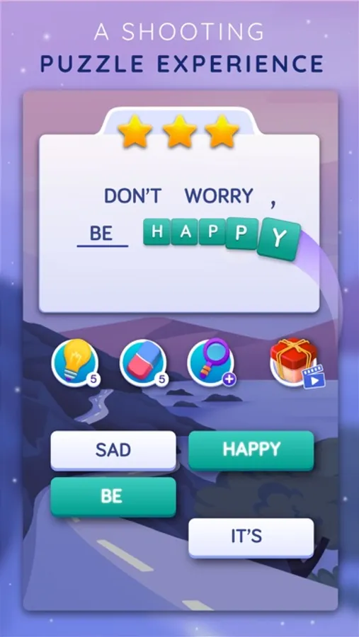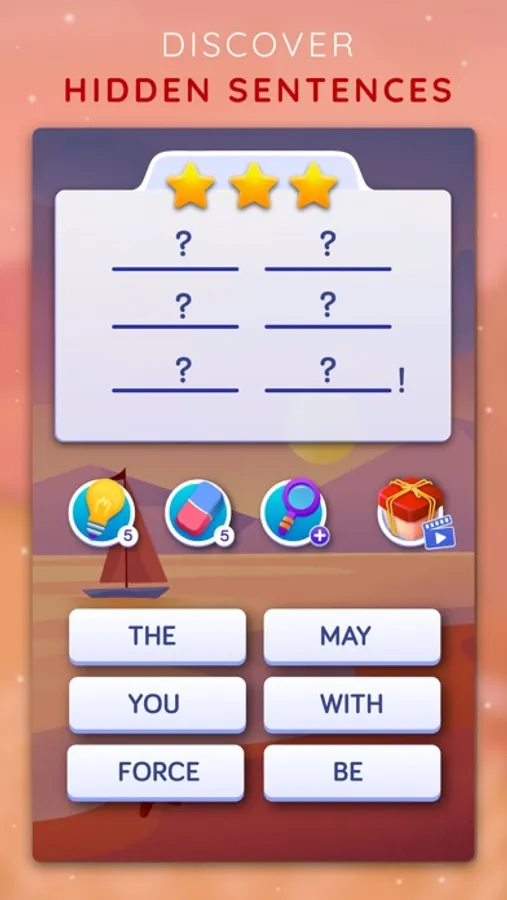 You do not need to rush as there is no time limitation. This word unscramble game is one of the best ways of relaxing. To aid players, our word puzzle sentence builder game offers valuable boosters, making gameplay sessions easier. Practice English grammar, sentence correction, and complex word usage as you progress through the game. Prepare to be captivated by a calming, addictive word puzzle game experience like no other. Challenge your intellect, enhance your memory, fulfill your spare time and improve your English language skills. You will arrange the scrambled words by tapping in correct order to form a meaningful sentence.