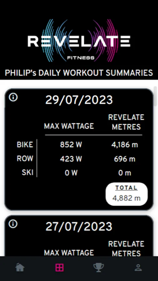 4) Daily Workout Summaries: Get a detailed breakdown of each workout, including maximum wattages and distance covered.