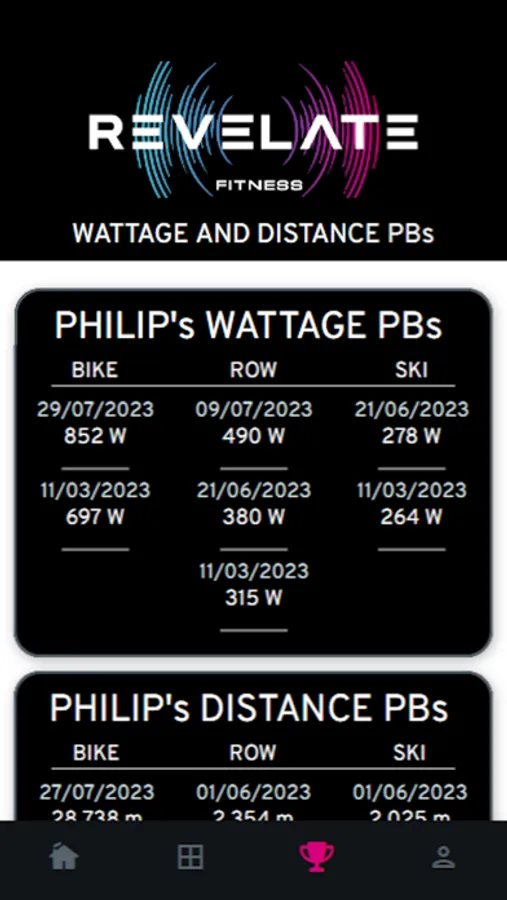 2) Maximum Wattages: Discover your peak power output on each machine.